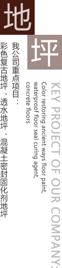 公司主要工程項目有彩色生態(tài)混凝土透水地坪,彩色復(fù)古地坪,藝術(shù)壓花地坪,混凝土密封固化劑地坪,環(huán)氧砂漿地坪,環(huán)氧防靜電地坪,環(huán)氧防滑紋理地坪,環(huán)氧玻璃鋼地坪,金剛砂耐磨地坪,水泥基彩色地坪,舊地面的修補(bǔ),空鼓的治理等。